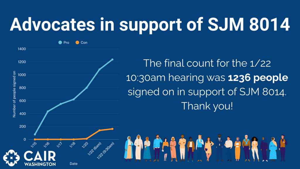 - Passing a joint memorial in Washington State would send a clear message: we do not accept the murder of our residents without justice.